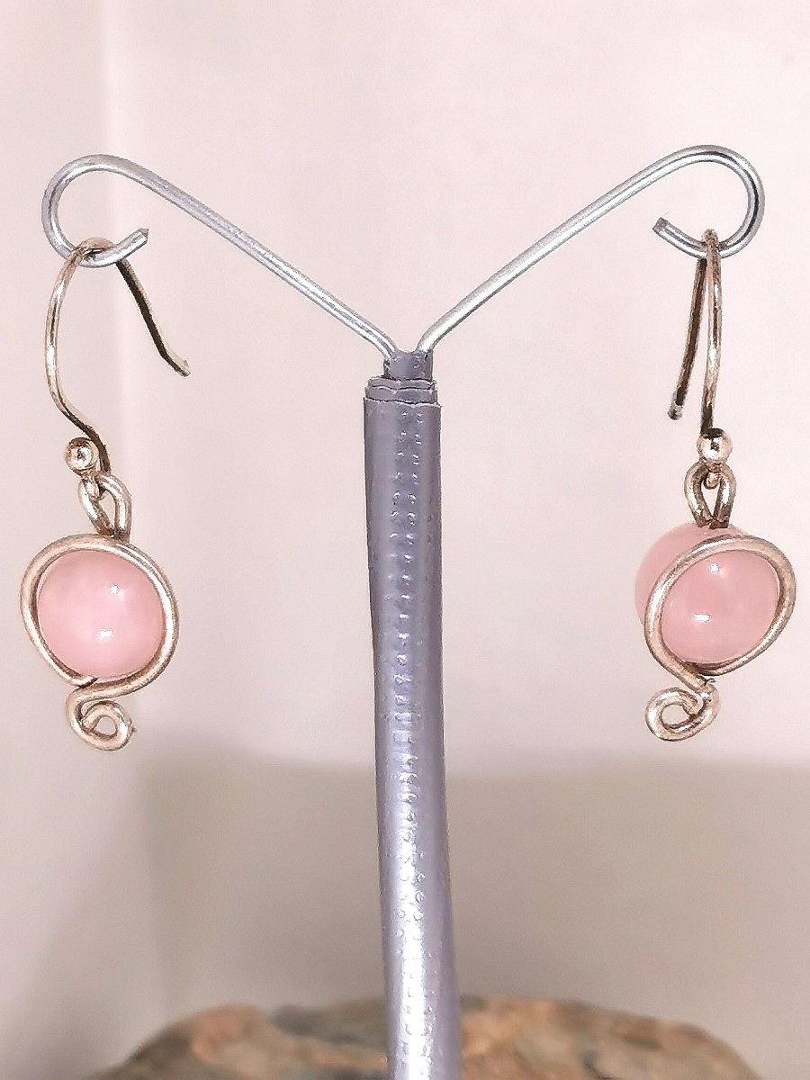 boucles d'oreilles en veritables pierres : quartz rose