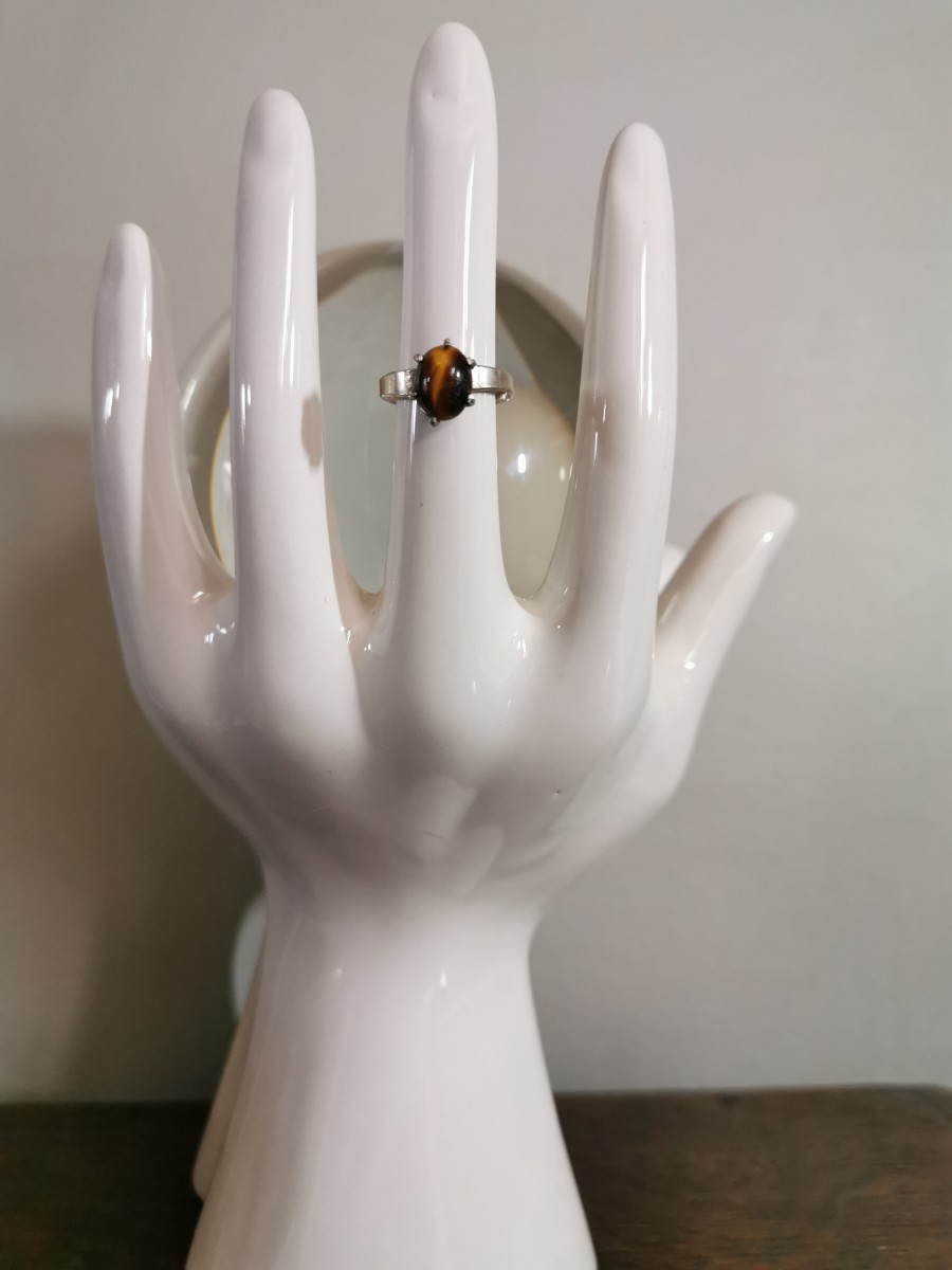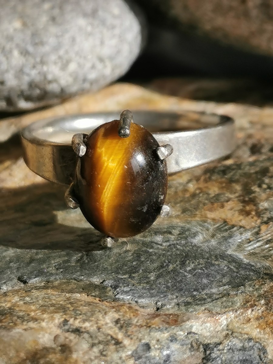 Bague réglable en véritables pierres : oeil de tigre