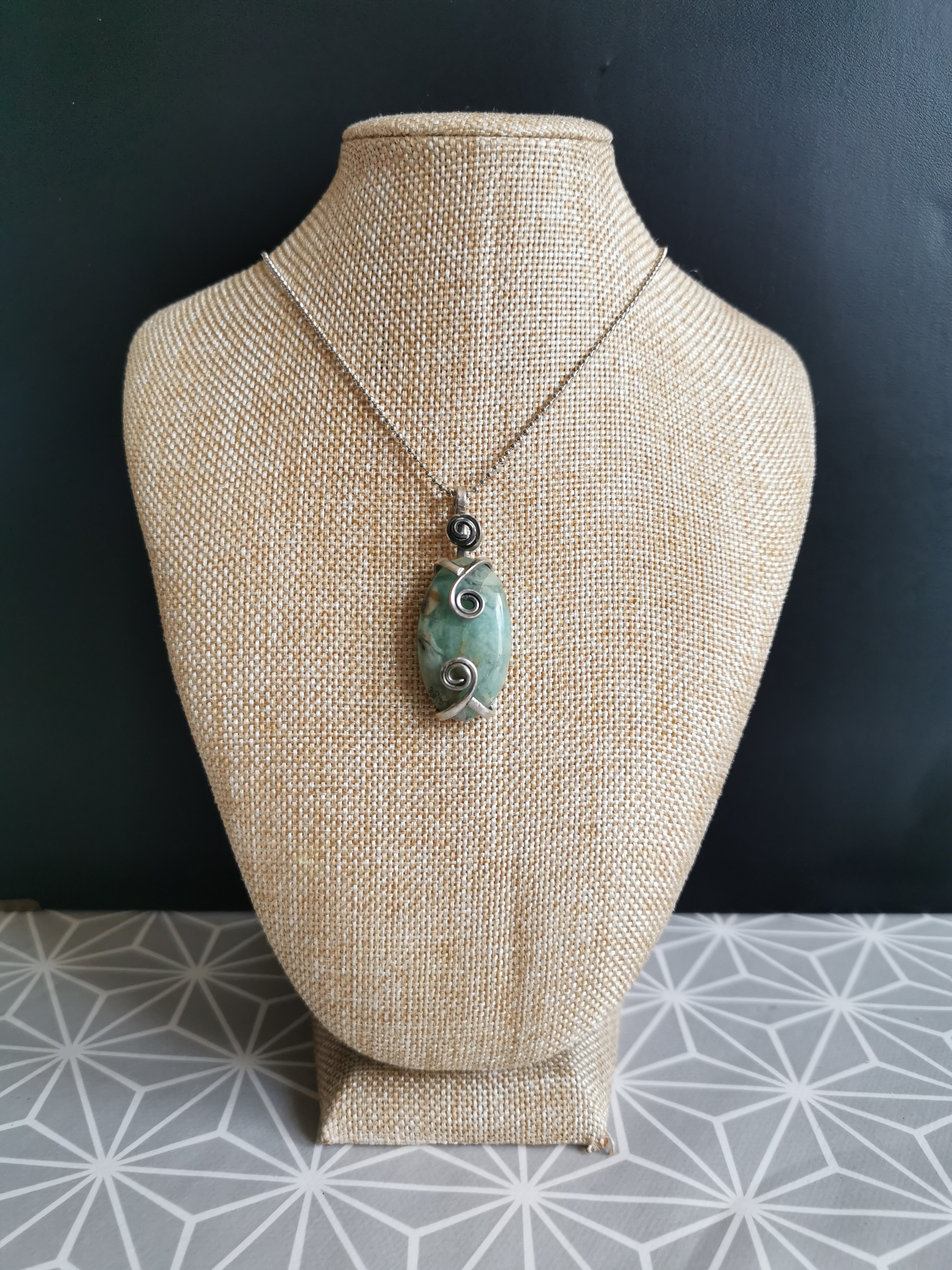 Pendentif en véritable pierre : opale verte