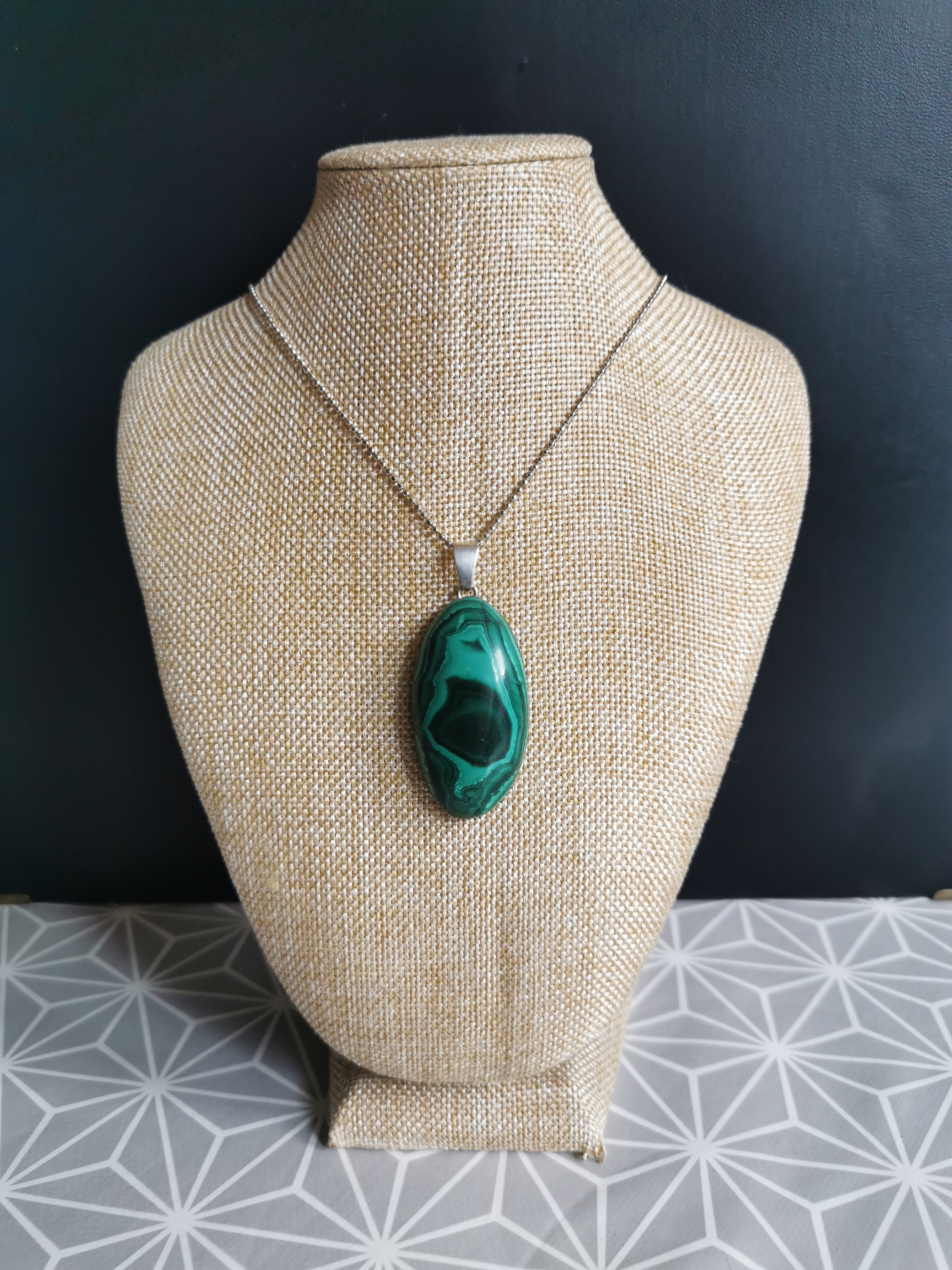 pendentif en véritable pierre : malachite