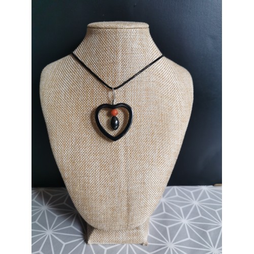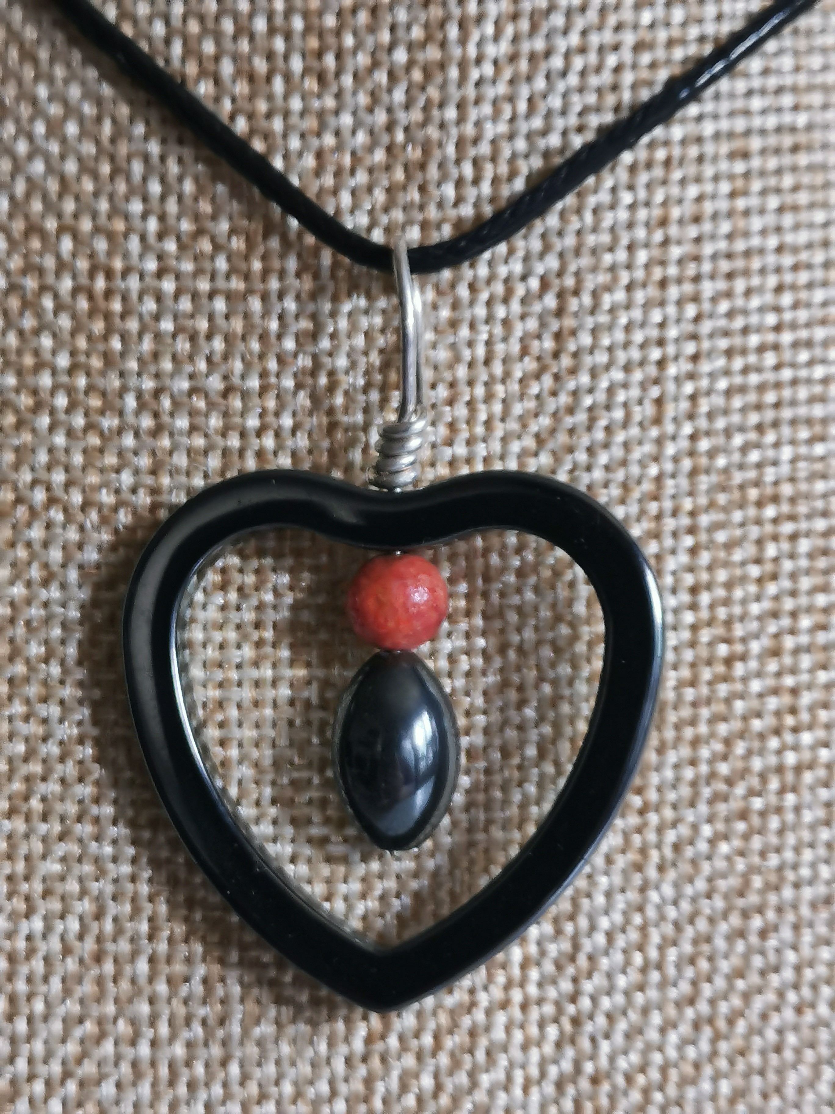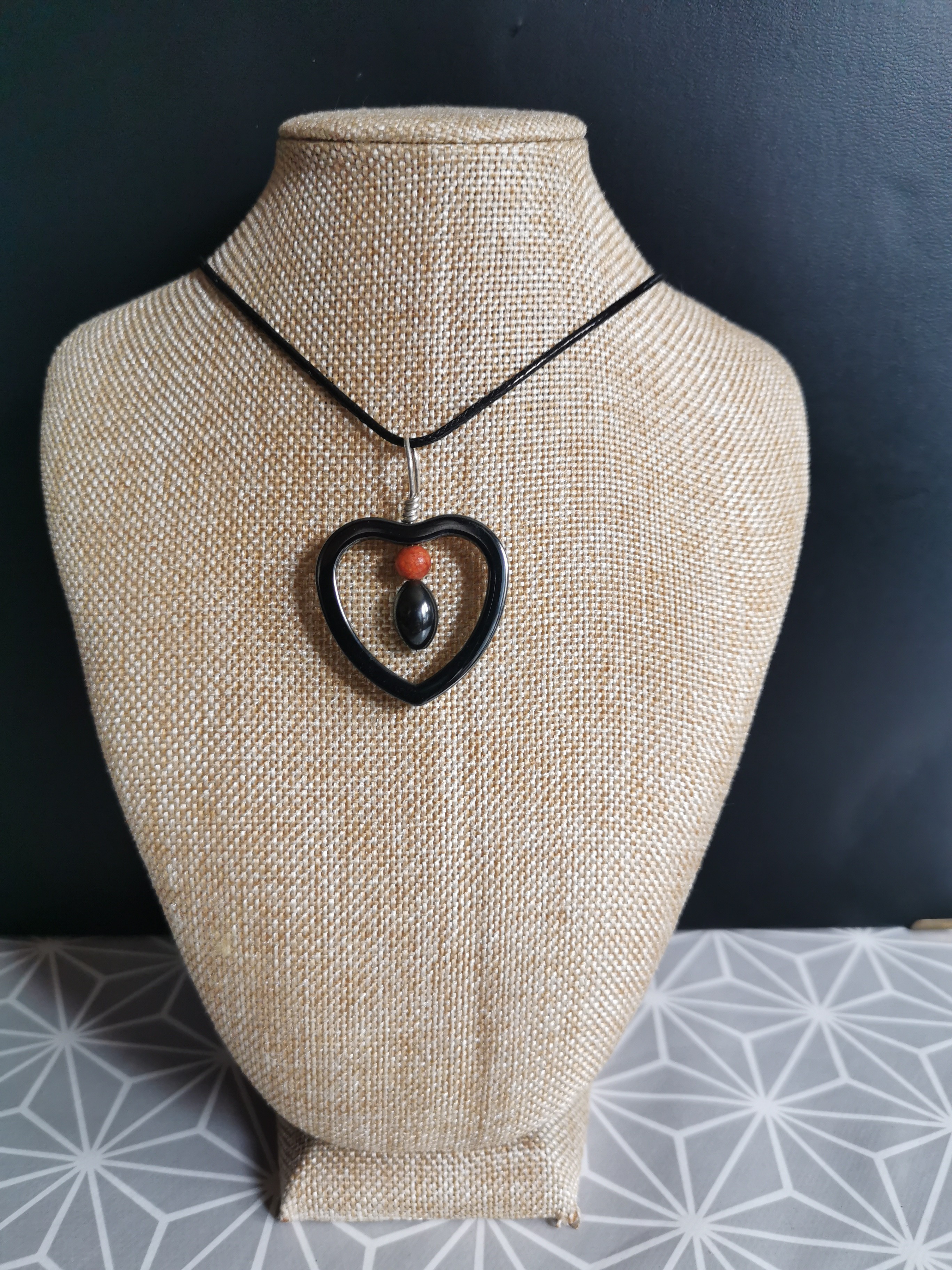 pendentif en corail gorgone et hematite. avec cordon réglable en hauteur