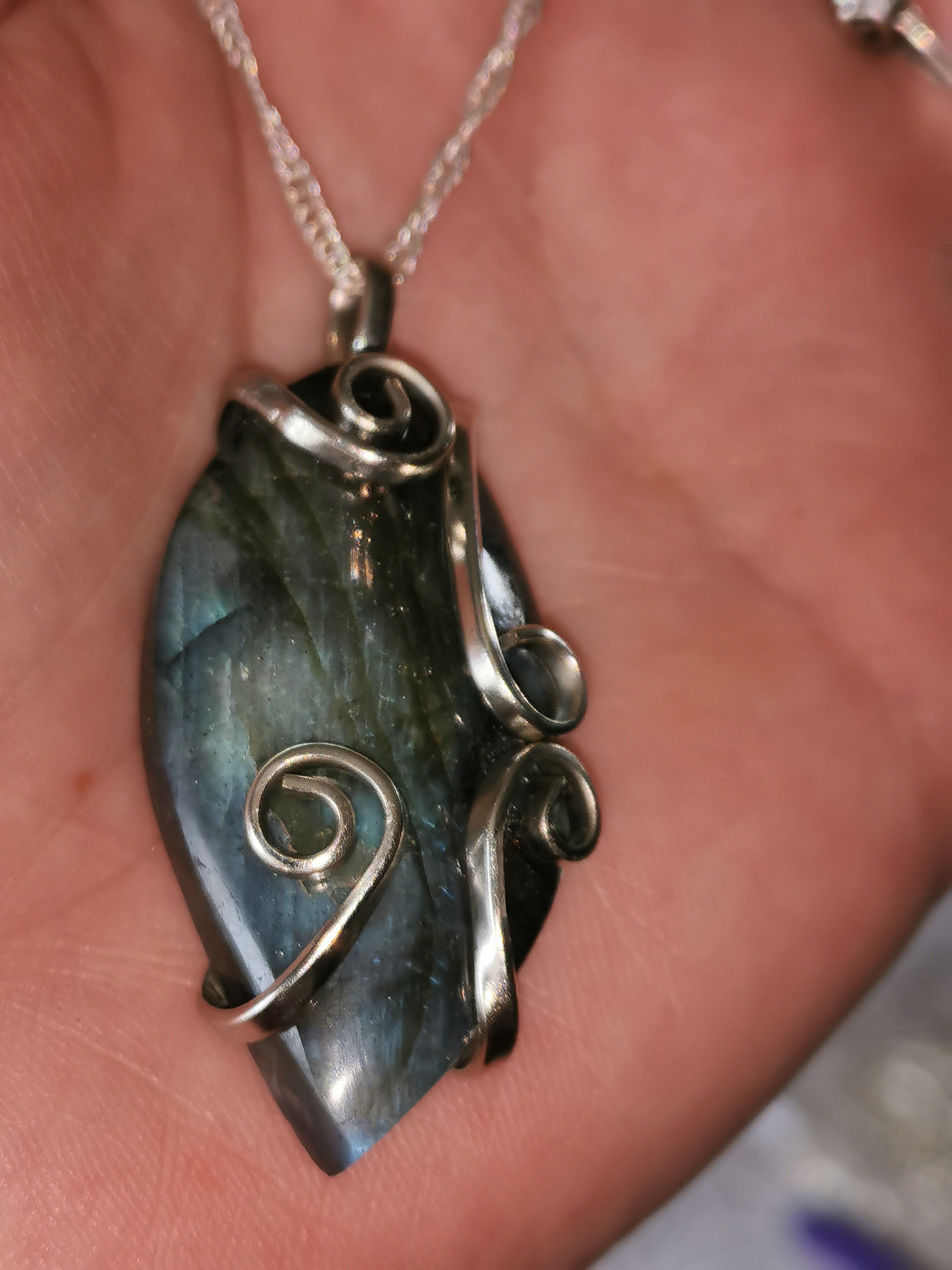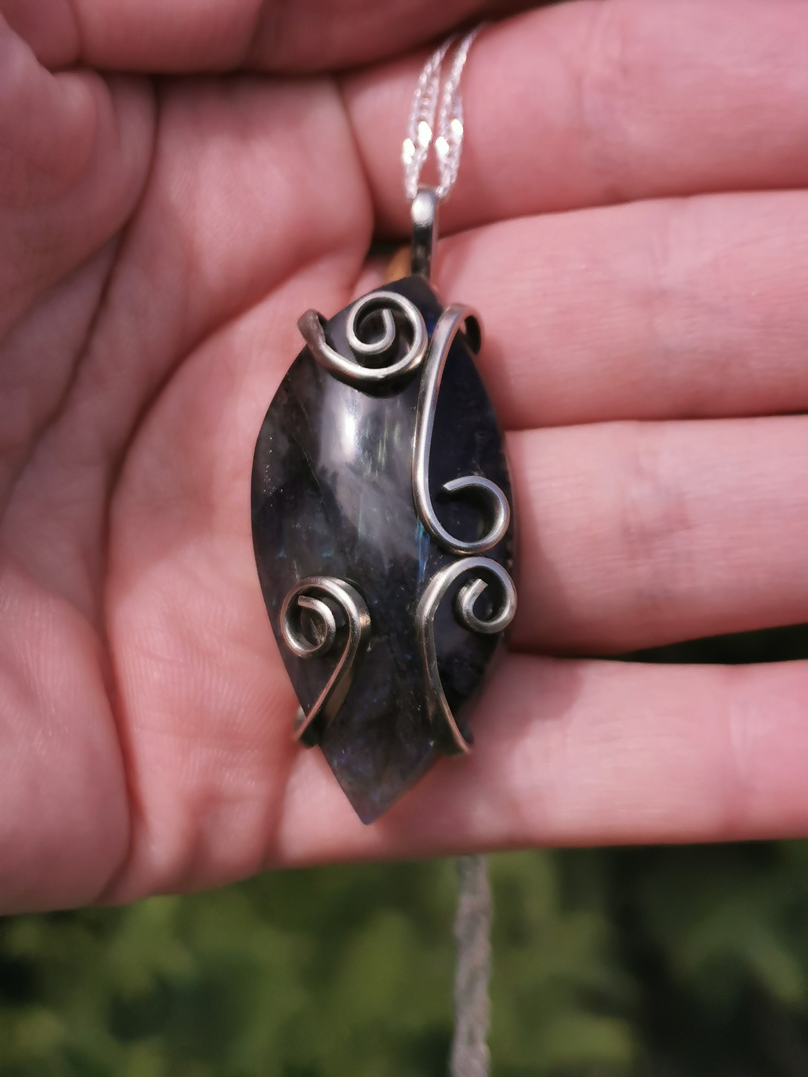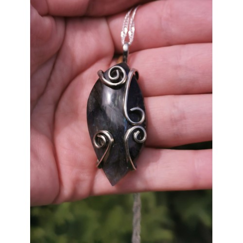 pendentif artisanal en Labradorite et argent plaqué 20 microns + chaine en plaqué argent 925