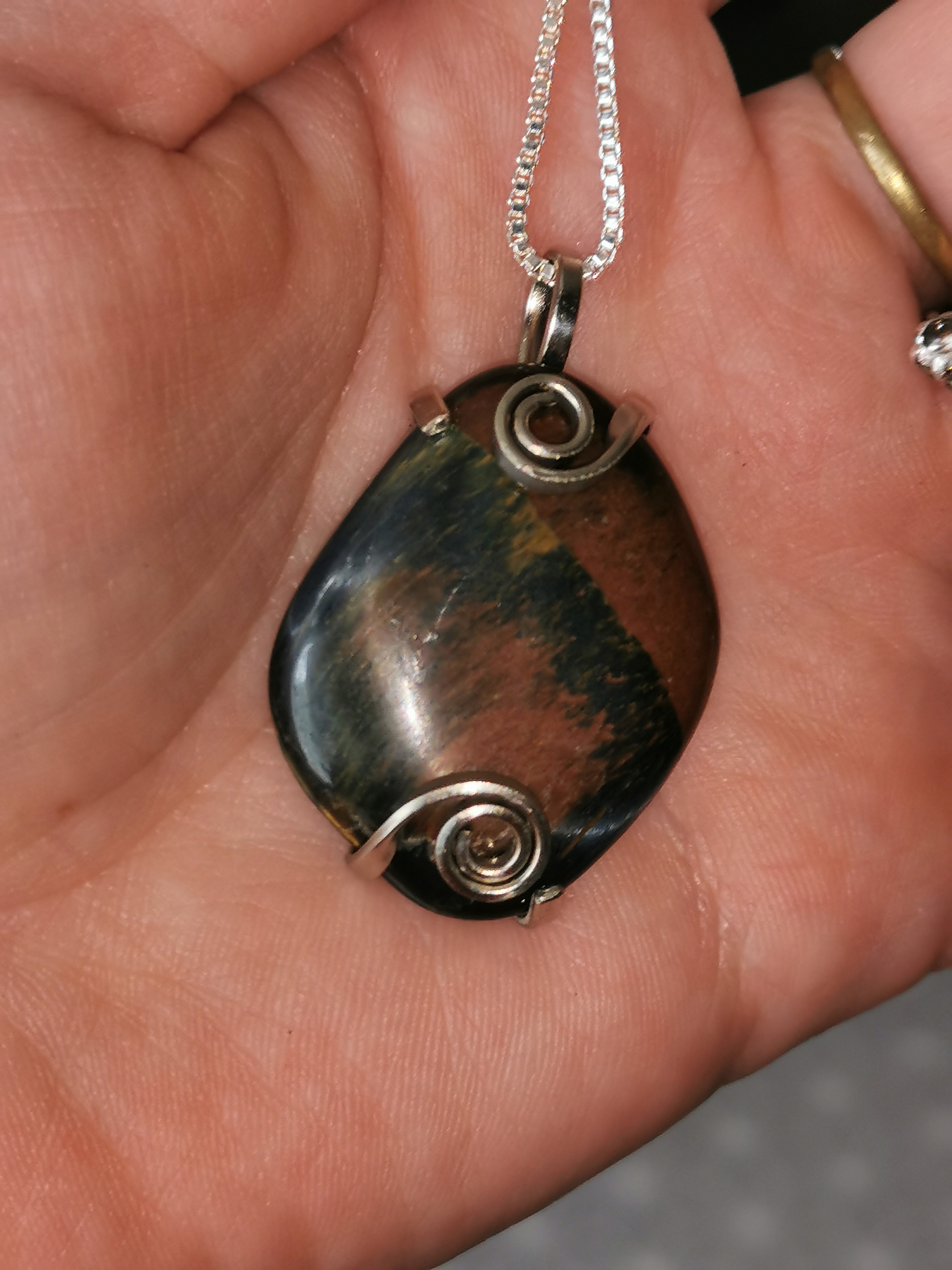 Pendentif artisanal Oeil de taureau en argent plaqué 20 microns, avec chaine en plaqué argent 20 microns