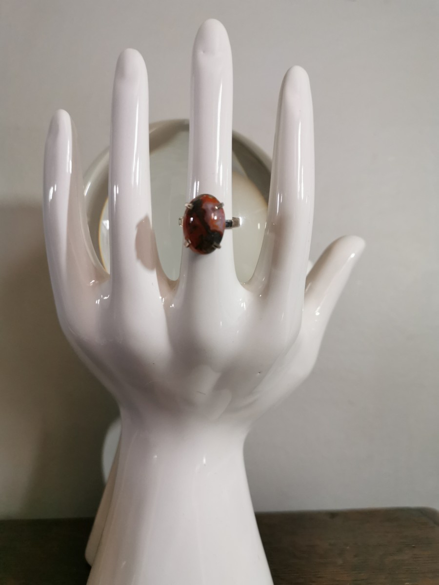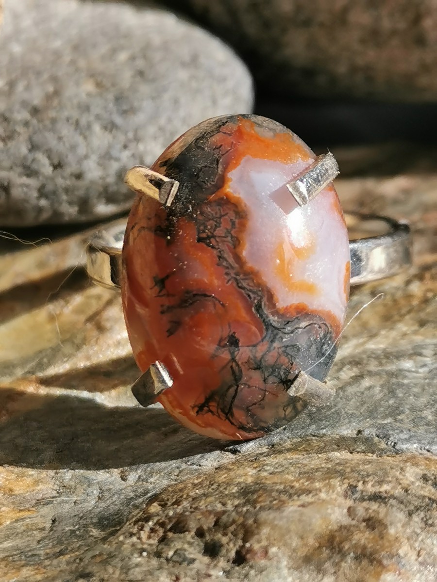 Bague en véritable pierre : agate mousse, dite herborisée