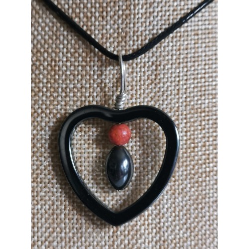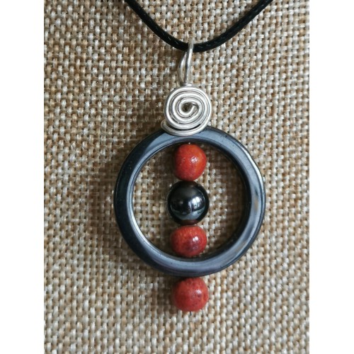 corail gorgone et hematite pendentif