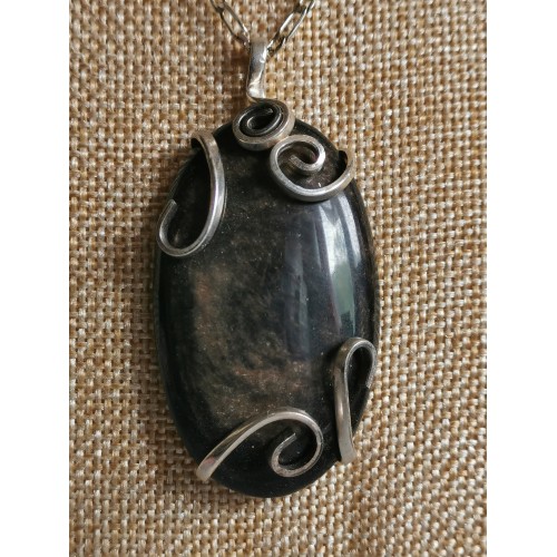 obsidienne dorée - pendentif argent 20 microns