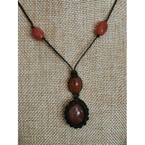 jaspe brun - pendentif macramé