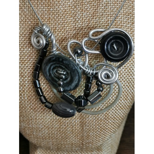 hématite et boutons - collier alu