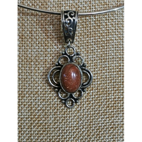 pierre de soleil - collier argent 20 microns