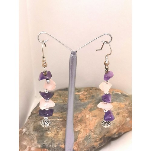 boucles d'oreilles améthyste quartz rose