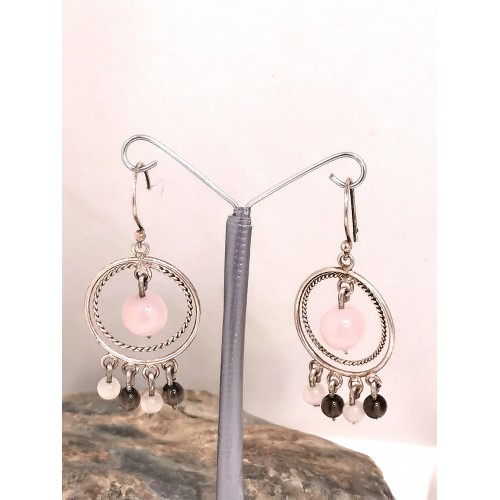 boucles d'oreilles quartz rose et quartz fumé
