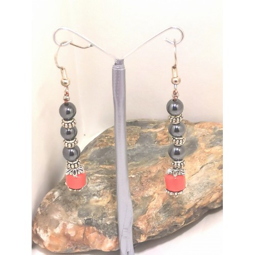 boubles d'oreilles hématite cornaline